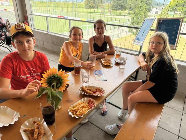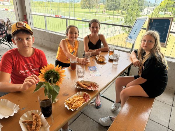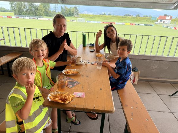Die Party startete um 11:30 und bot unserem Nachwuchs reichlich Möglichkeiten, sich nochmals sportlich etwas auszutoben. Für beste Verpflegung sorgte unser Helferteam, welches hierfür ebenfalls die neuen Anlagen des FC Koblach nutzen durfte und unseren Kids Pommes und Chicken Stripes servierte. So dienten die warmen Sonnenstunden als gelungener Abschluss der Wettkampfsaison und läuteten sogleich die 3-wöchige Trainingspause ein.