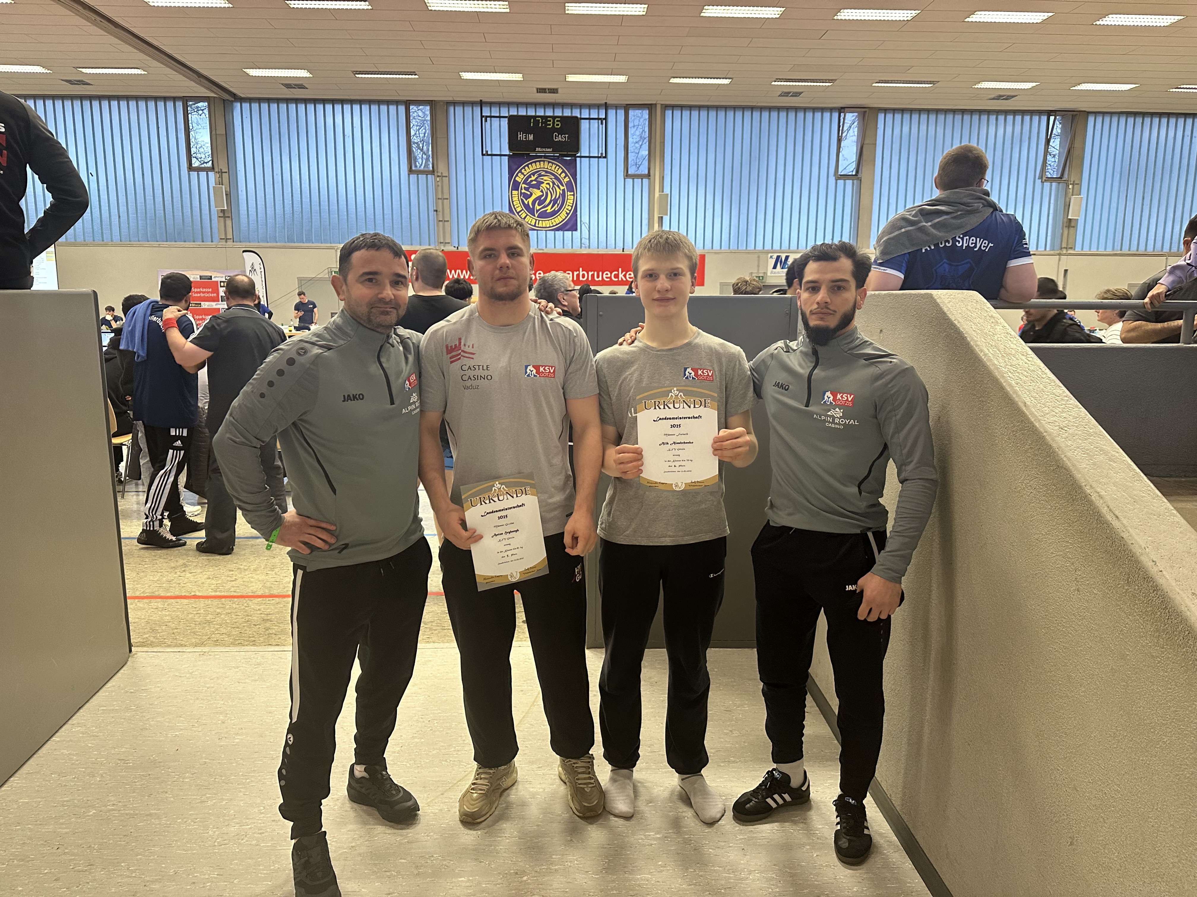 Neben der Österreichischen Staatsmeisterschaft der Männer im griechisch-römischen Stil fand am 22.02.25 auch die 20. offene Landesmeisterschaft beider Stilarten im Saarland statt. Ausgetragen wurde das Turnier vom RG Saarbrücken im Sportzentrum Gersweiler. Der KSV Götzis reiste mit Anton Hyrbelnyk und Alik Aleshchenko unter Betreuung von Markus Nagel und Hamsat Asuchanov, der nach einer Erkrankung noch nicht wieder ganz fit war und deshalb nicht selbst auf der Matte stand, zum stark besetzten Turnier. Neben unseren Jungs nahmen bei dem stark besetzten Turnier unter anderem auch eine Nationalauswahl der Schweiz, sowie Sportler aus Frankreich und den USA teil.