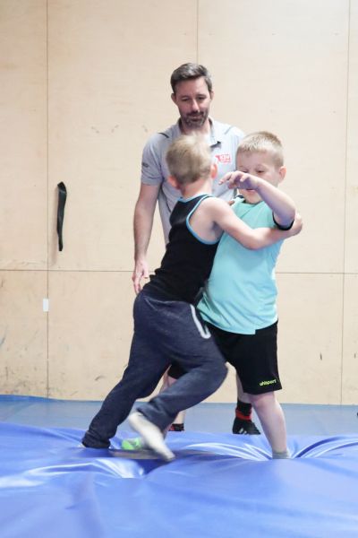 Matthias Kathan, seines Zeichens Sportlicher Leiter der Götzner Ringer, nahm sich mit den Kindergartenpädagoginnen Zeit, um den Kleinen die Sportart Ringen näherzubringen. Dass der Spaß dabei nicht zu kurz kam, belegen die Bilder.