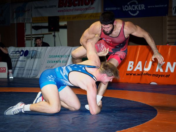Matieva Rasul gab nach einer Verletzungspause sein Comeback in der 60-kg-Gewichtsklasse. Hier traf er im griechisch-römischen Stil auf den Inzinger Nachwuchsringer Oberdanner Elias, welchen er bei einem Punktestand von 6:0 schultern konnte.