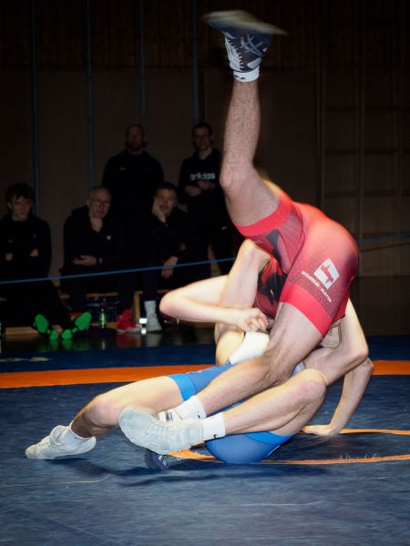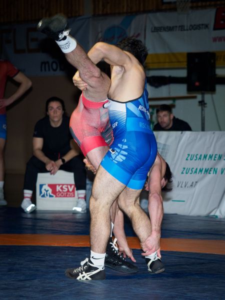 Im Schwergewicht setzte das Götzner Trainerteam auf unsere Verstärkung aus Georgien. Tsertsvadze Iuza – welcher sich ebenfalls gerade erst von einer Grippe erholt hatte – traf auf Haslwanter Timon. Iuza – konditionell sichtlich angeschlagen – hatte anfangs Schwierigkeiten zu punkten, geriet aber nie wirklich in Gefahr, das Duell zu verlieren. Nach einem actionreichen Finish konnte sich Iuza klar mit 10:3 durchsetzen.