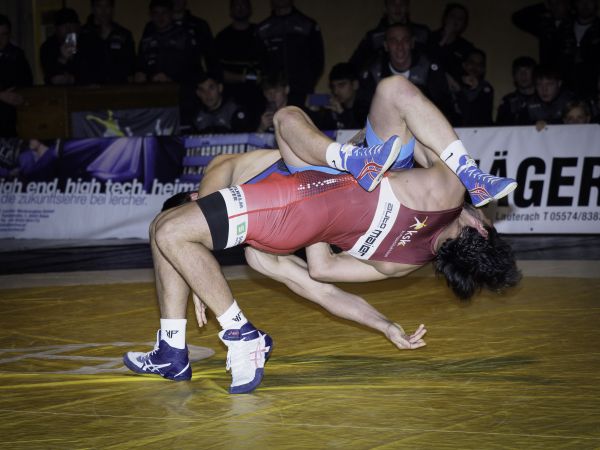 Ein Highlight des Abends bot Kenesarin Abdrakhman, der bis 72 kg auf die Matte trat und einmal mehr auf den Klauser Legionär Glonti Nika traf. Abdrakhman, der bisher alle Begegnungen mit Glonti verloren hatte, kämpfte von Anfang an beherzt, geriet gegen den Greco-Profi jedoch in Rückstand. Schließlich gelang es ihm jedoch, seinen Gegner in die Bodenlage zu ringen, wo er mit einem starken Aufreißer punkten konnte. Abdrakhman sah seine Chance und verwies Glonti erneut in die Bodenlage, wo er den Sack mit mehreren Aufreißern schließlich zumachte und einen spektakulären Sieg durch technische Überlegenheit errang.