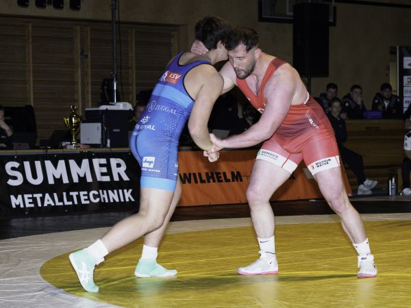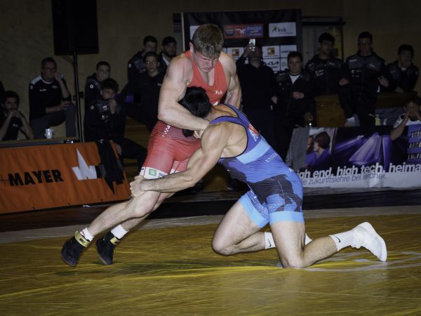 Der Final-Rückkampf startete mit der Greco-Runde. Hier war der KSK Klaus schon in der 1. Begegnung dominant. Im ersten Duell des Abends traf Matieva Rasul auf den Klauser Legionär Javakhadze Luka. Gegen den Greco-Spezialisten musste sich Rasul leider klar geschlagen geben.