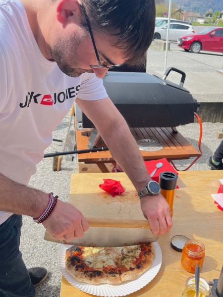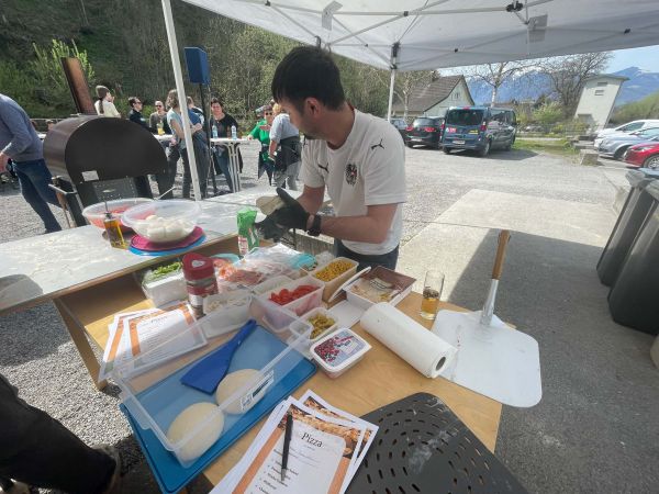 Zahlreiche Helfer, welche sich das ganze Jahr über in unterschiedlichsten Funktion dem KSV zur Verfügung stellen, hatten sich das gute Wetter am Samstag, den 22. April verdient. Die "Pizzagurus" Andreas und Markus Nagel sowie Michael Loacker bestückten andauernd die beiden Pizzaöfen. Leckere Kuchen und die spezielle "Helfertorte" von Sabrina Melioris durften nicht fehlen. Danke auch das aufmerksame Serviceteam mit Selina und Matthias.