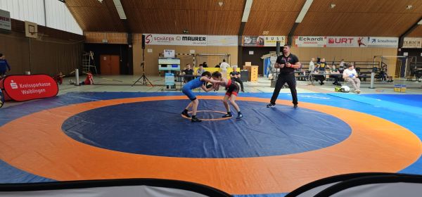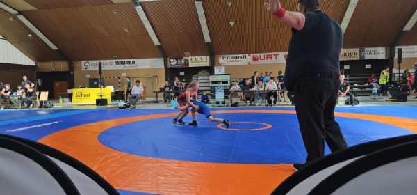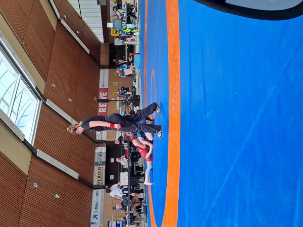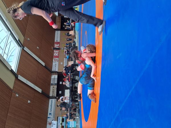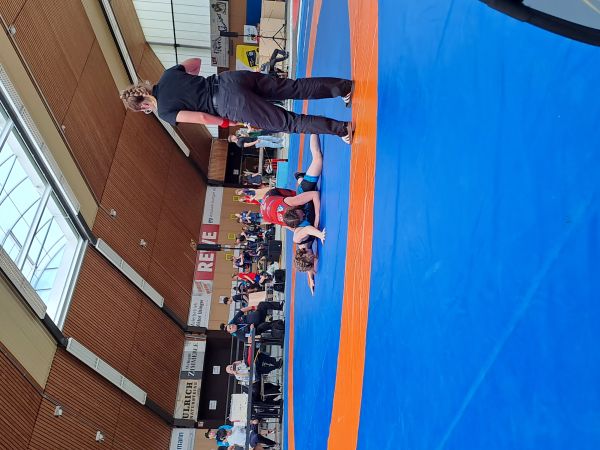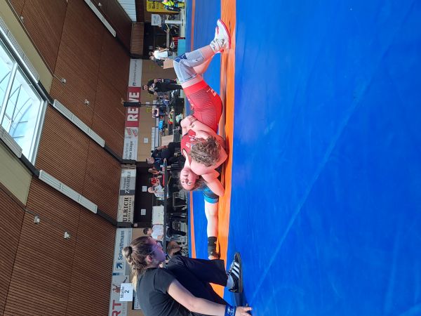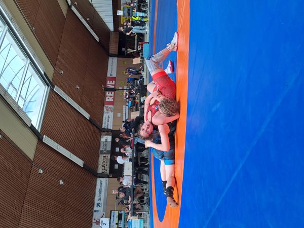 Ebenfalls bei den Schülerinnen trat Naila Ender an. Sie ging bis 27kg an den Start und bestritt erst ihr zweites Schülerturnier. Naila hatte insgesamt 4 Kämpfe und konnte alle für sich entscheiden. Über alle Begegnungen hinweg rang sie stets offensiv und konnte vor allem mit ihren sehr guten Beinangriffen punkten. Dass sie zwei ihrer Kämpfe nach Rückständen noch drehen konnte, unterstreicht ihren Siegeswillen und ihre mentale Stärke. Herzliche Gratulation zur verdienten Goldmedaille!