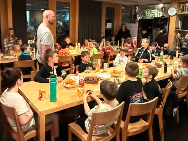 Die Mädchen und Jungen der Jugend-Gruppe trafen sich zu einem Spieletraining, um die intensiven Trainingseinheiten des vergangenen Jahres ausklingen zu lassen. Das Trainerteam um Cheftrainer Andreas Nagel, „Mojo“ Lkhagvasuren und Phridon Shavadze hatte sich zu diesem Zweck mehrere neue Spiele überlegt, und die Kinder konnten sich auf der Matte austoben. Im Anschluss gab es ebenfalls eine Nikolaus-Jause mit belegten Sandwiches, Mandarinen und zahlreichen weihnachtlichen Süßigkeiten.
