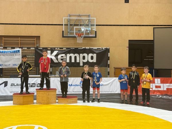 Am 22.03.25 fand das 29. Internationale Turnier für Ringeranfänger in Klaus statt. Der KSV Götzis nahm mit 13 unserer jüngsten Ringerinnen und Ringern an dem gut besuchten Turnier teil. Unser Nachwuchs maß sich mit anderen Ringeranfängern aus Österreich, Deutschland und der Schweiz und konnte erste Erfahrungen auf der Matte sammeln. Die jungen Sportler konnten dabei tolle Erfolge erzielen und schon einige der trainierten Techniken zum Einsatz bringen. Insgesamt konnte unser Team 8 Podestplätze und darunter gar 3 Turniersiege erzielen. Jonas Boulanouar, Leonardo Romano und Dian Nikqi konnten die Goldmedaille erringen. Das Trainerteam rund um Jugendtrainer Andreas Nagel und KSV-Böckle Trainer Marcel Heinzle wurde gebildet von Mojo Lkhagvasuren, Phridon Shavadze und Sabrina Melioris, welche durchwegs zufrieden mit den Leistungen unserer Debütantinnen und Debütanten waren. Wir gratulieren allen zu den ersten Erfahrungen auf der Ringermatte und bedanken uns herzlich bei allen Trainern für die Betreuung.