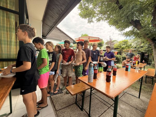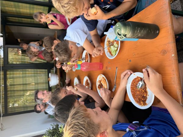 Auch kulinarisch waren die Teilnehmer bestens versorgt. Das Küchenteam um Karl Kathan und Jürgen Metzler versorgte unseren Nachwuchs mit hervorragenden Mahlzeiten. Von Spaghetti Bolognese über Gulasch mit Knödeln bis hin zu Burgern und dem bekannten „Zack Zack“ war für jeden Geschmack etwas dabei. So hatten die jungen Ringer nach den intensiven Trainingseinheiten stets neue Energie zur Verfügung. Vielen Dank auch an alle Köchinnen und Köche, die zuhause für unser Team vorgekocht haben! Die Kampfmannschaft verpflegte sich zum Frühstück und zum Mittagessen selbst, während das gemeinsame Abendessen im Restaurant vom Verein übernommen wurde.