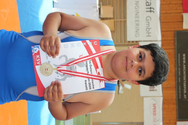 Die etwas angeschlagene Mannschaft des KSV Götzis – mehr Details dazu im Bericht zum griechisch-römischen Bewerb – konnte ihre sehr gute Leistung vom Samstag leider nicht mehr ganz wiederholen. Durfte man sich am Vortag noch über zwei Turniersieger freuen, konnte sich am Sonntag nur noch Hamza Lök die Goldmedaille umhängen. Er ist somit Österreichischer U14-Doppelmeister! Herzliche Gratulation zu dieser Glanzleistung.