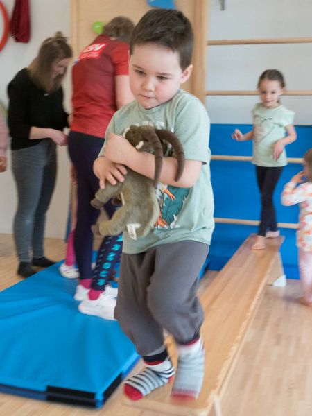 Im Bewegungsraum des Kindergartens Ried haben nun auch die Kinder aus Koblach die Gelegenheit, dieses Angebot zu nutzen. Ab diesem Frühjahr finden jeden Mittwochnachmittag jeweils zwei Gruppen statt, anfangs noch im Beisein eines Elternteils, die spielerisch gemeinsam mit zwei Übungsleiterinnen eine Vielzahl von Übungen durchführen. Da wird beispielsweise über Langbänke balanciert, die kleine Kletterwand benutzt oder über niedrige Hindernisse gesprungen. Organisatorisch verantwortlich ist Cornelia Demirel, die in Koblach lebt und kürzlich eine Übungsleiterprüfung absolviert hat.