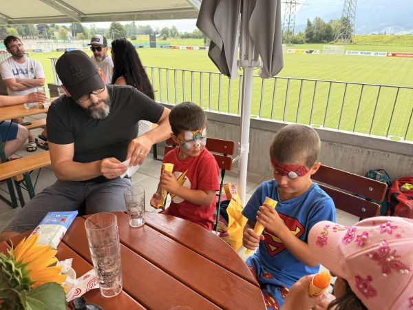 Die Party startete um 11:30 und bot unserem Nachwuchs reichlich Möglichkeiten, sich nochmals sportlich etwas auszutoben. Für beste Verpflegung sorgte unser Helferteam, welches hierfür ebenfalls die neuen Anlagen des FC Koblach nutzen durfte und unseren Kids Pommes und Chicken Stripes servierte. So dienten die warmen Sonnenstunden als gelungener Abschluss der Wettkampfsaison und läuteten sogleich die 3-wöchige Trainingspause ein.