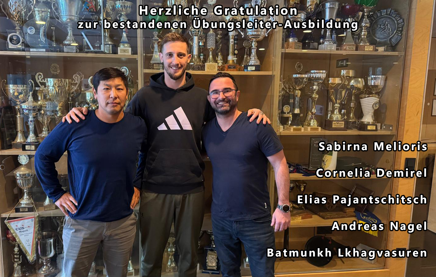 Andreas Nagel, Batmunkh Lkhagvasuren und Elias Pajantschitsch die Übungsleiterausbildung beim österr. Ringsportverband.