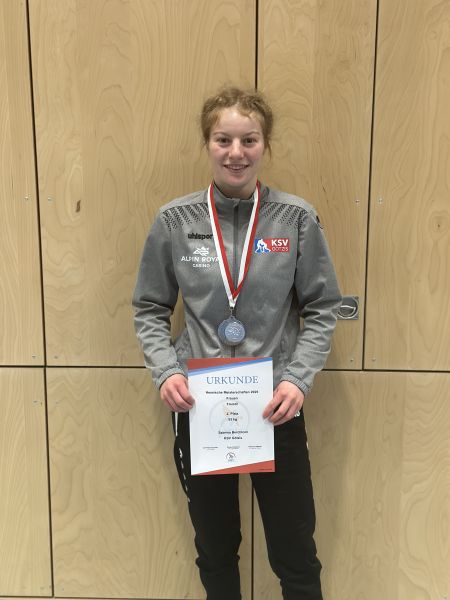 Bei den Frauen trat Sabrina bis 53kg an. Sie hatte insgesamt zwei Gegnerinnen und konnte ein hart umkämpftes Duell bei einem Stand von 15:10 mit einem Schultersieg für sich entscheiden. Im nächsten Kampf unterlag sie ihrer Gegnerin und belegte dadurch den hervorragenden 2. Platz.