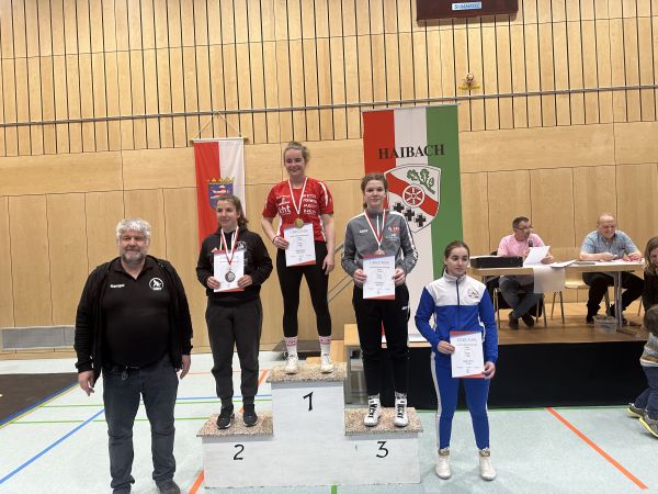 Zum Weltfrauentag am 08.03.25 fand die offene Hessische Landesmeisterschaft der Frauen, weiblichen Jugend und Schülerinnen in Haibach statt. Krankheits- und verletzungsbedingte Ausfälle von Emma Maitz, Anna Kathan, sowie Oleksandra Kogut und Veronika Markotenko ließen unser Team leider etwas schrumpfen. Trotzdem reisten mit Nika Ofenbeck, Ella Kathan, Sabrina Berchtold, Celina Denz und Lena Salzgeber fünf Sportlerinnen des KSV unter der Betreuung von Frauentrainer Markus Nagel nach Deutschland. Zusätzliche Unterstützung erhielt das Team von Phridon Shavadze und Andreas Berchtold.