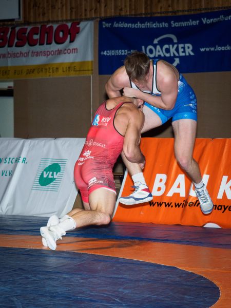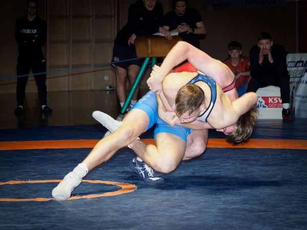 Im Schwergewicht setzte das Götzner Trainerteam auf unsere Verstärkung aus Georgien. Tsertsvadze Iuza – welcher sich ebenfalls gerade erst von einer Grippe erholt hatte – traf auf Haslwanter Timon. Iuza – konditionell sichtlich angeschlagen – hatte anfangs Schwierigkeiten zu punkten, geriet aber nie wirklich in Gefahr, das Duell zu verlieren. Nach einem actionreichen Finish konnte sich Iuza klar mit 10:3 durchsetzen.