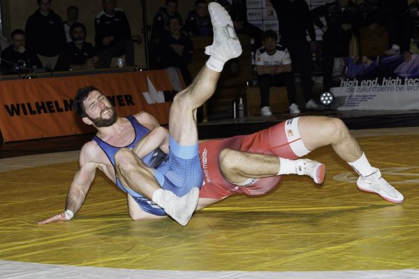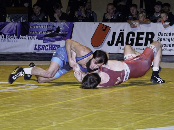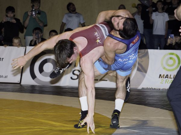 Der Final-Rückkampf startete mit der Greco-Runde. Hier war der KSK Klaus schon in der 1. Begegnung dominant. Im ersten Duell des Abends traf Matieva Rasul auf den Klauser Legionär Javakhadze Luka. Gegen den Greco-Spezialisten musste sich Rasul leider klar geschlagen geben.