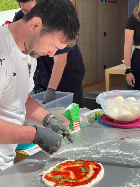 Zahlreiche Helfer, welche sich das ganze Jahr über in unterschiedlichsten Funktion dem KSV zur Verfügung stellen, hatten sich das gute Wetter am Samstag, den 22. April verdient. Die "Pizzagurus" Andreas und Markus Nagel sowie Michael Loacker bestückten andauernd die beiden Pizzaöfen. Leckere Kuchen und die spezielle "Helfertorte" von Sabrina Melioris durften nicht fehlen. Danke auch das aufmerksame Serviceteam mit Selina und Matthias.