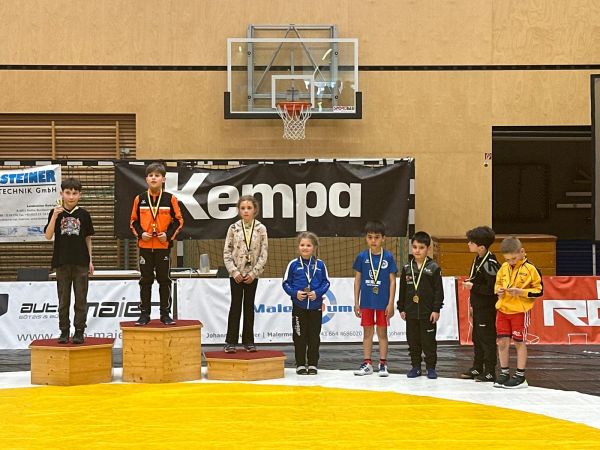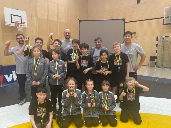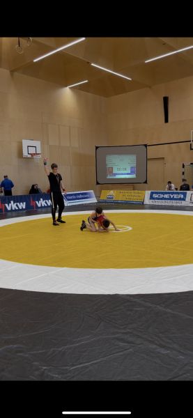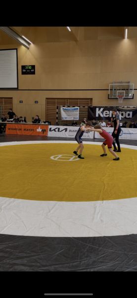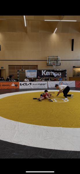 Am 22.03.25 fand das 29. Internationale Turnier für Ringeranfänger in Klaus statt. Der KSV Götzis nahm mit 13 unserer jüngsten Ringerinnen und Ringern an dem gut besuchten Turnier teil. Unser Nachwuchs maß sich mit anderen Ringeranfängern aus Österreich, Deutschland und der Schweiz und konnte erste Erfahrungen auf der Matte sammeln. Die jungen Sportler konnten dabei tolle Erfolge erzielen und schon einige der trainierten Techniken zum Einsatz bringen. Insgesamt konnte unser Team 8 Podestplätze und darunter gar 3 Turniersiege erzielen. Jonas Boulanouar, Leonardo Romano und Dian Nikqi konnten die Goldmedaille erringen. Das Trainerteam rund um Jugendtrainer Andreas Nagel und KSV-Böckle Trainer Marcel Heinzle wurde gebildet von Mojo Lkhagvasuren, Phridon Shavadze und Sabrina Melioris, welche durchwegs zufrieden mit den Leistungen unserer Debütantinnen und Debütanten waren. Wir gratulieren allen zu den ersten Erfahrungen auf der Ringermatte und bedanken uns herzlich bei allen Trainern für die Betreuung.