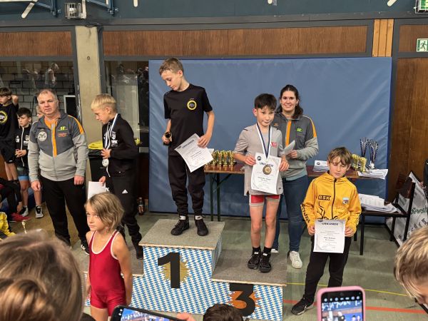 12 Jungs und 4 Mädchen traten in 15 Gewichtsklassen an und konnten insgesamt 9 Medaillen erringen – darunter 3 Goldmedaillen. Ella Kathan, Sabrina Berchtold und Hamza Lök gingen jeweils als Turniersieger von der Matte. Herzliche Gratulation!