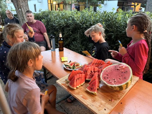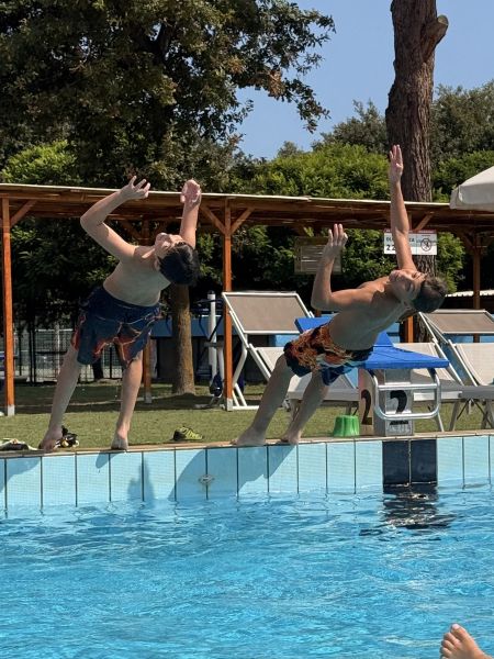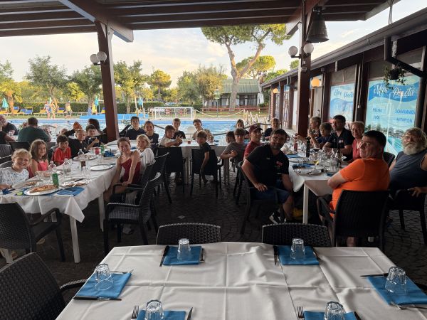 Trotz der zahlreichen Trainingseinheiten kam auch das Gemeinschaftserlebnis nicht zu kurz. Das Feriengelände bot neben den Pools auch Tennisplätze sowie eine Spielhalle. Das Meer war nur wenige Gehminuten entfernt, und der idyllische Sandstrand konnte mit einem Beachvolleyballplatz punkten. Dies bot genügend Möglichkeiten für gemeinsame Aktivitäten, die die Woche sowohl für unseren Nachwuchs als auch für unsere Kampfmannschaft unvergesslich machten. So stärkten kreative Spiele im Sand oder ein Spaziergang zum Sonnenaufgang den Teamgeist unserer Nachwuchsmannschaft. Für Begeisterung sorgten auch besondere Programmpunkte wie eine Schaumparty, der Besuch einer Kinderdisco oder eine kleine Geburtstagsfeier im Lager. Ein Highlight war außerdem ein gemeinsamer Ausflug in die Stadt Ravenna, wo die Jugendlichen bei einem Eis das italienische Flair genießen konnten. Ein besonderes Erlebnis für den Nachwuchs war auch der Besuch der Trainingskämpfe unserer Kampfmannschaft, bei denen die Jungen ihre „alten“ Vorbilder anfeuern und ihnen nacheifern konnten.