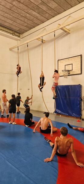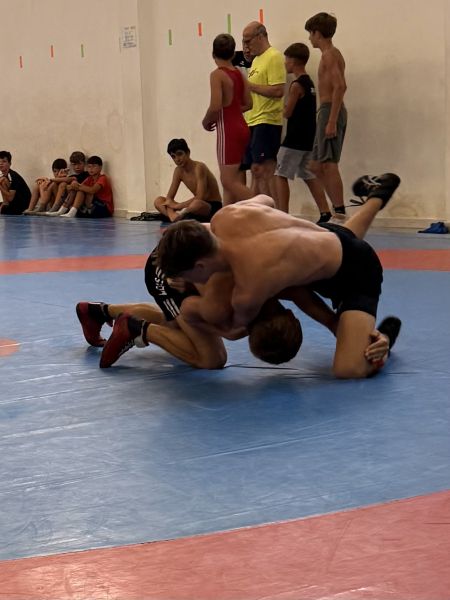 Die Kampfmannschaft setzte ebenfalls auf Athletikeinheiten auf dem Feriengelände, absolvierte jedoch auch viele intensive Mattentrainings in Ravenna. Hierzu durften wir erneut die Trainingshalle des C.S.R.C. Portuali Ravenna nutzen. Darüber hinaus nahmen zahlreiche italienische Sportler unter der Leitung von Trainer Carlos Shartos teil, wodurch uns eine Vielzahl an sehr guten Trainingspartnern zur Verfügung stand. Während Chefcoach Michael Häusle das Freistiltraining leitete, übernahm unser sportlicher Leiter Matthias Kathan das griechisch-römische Training. Zur optimalen Vorbereitung auf die Bundesligasaison standen zahlreiche Trainingskämpfe mit wechselnden Partnern auf dem Programm. Das Trainerteam war mit der Mannschaft sehr zufrieden und hob besonders die Leistungen der jungen Sportler hervor, die trotz der hohen Intensität mit vollem Einsatz dabei waren.