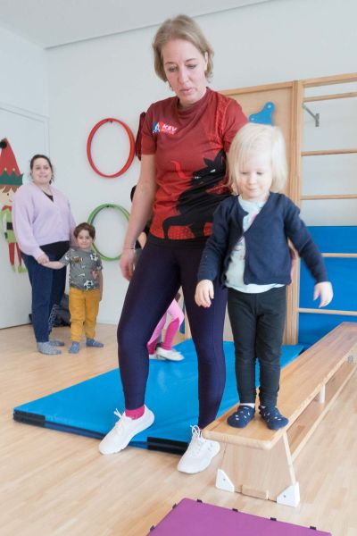 Im Bewegungsraum des Kindergartens Ried haben nun auch die Kinder aus Koblach die Gelegenheit, dieses Angebot zu nutzen. Ab diesem Frühjahr finden jeden Mittwochnachmittag jeweils zwei Gruppen statt, anfangs noch im Beisein eines Elternteils, die spielerisch gemeinsam mit zwei Übungsleiterinnen eine Vielzahl von Übungen durchführen. Da wird beispielsweise über Langbänke balanciert, die kleine Kletterwand benutzt oder über niedrige Hindernisse gesprungen. Organisatorisch verantwortlich ist Cornelia Demirel, die in Koblach lebt und kürzlich eine Übungsleiterprüfung absolviert hat.